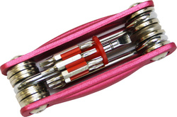 Többfunkciós csavarhúzó 18 különböző típusú szerszámmal. Lapos csavarhúzó 5mm, 2x keresztcsavarhúzó 5mm, torx bitek T4, T5, T6, T7, T8, T9, T10, T15, lapos 1,5; 2; 2,5 mm, kereszt PH000, PH00, PH0. Hossza 88mm, szélessége 44mm, vastagsága 24mm.