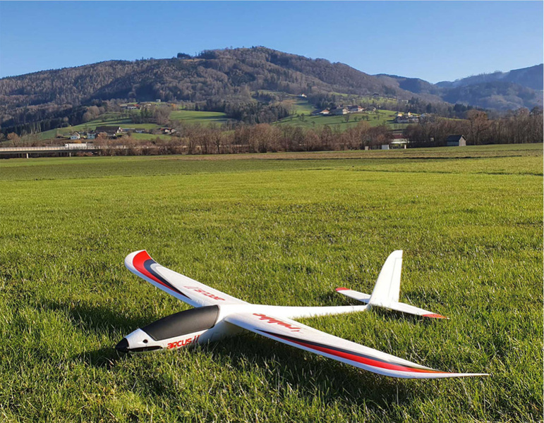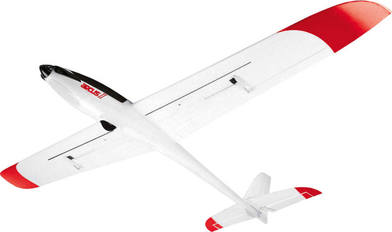 RC vitorlázó modell segédmotorral, ARCUS II PNP 1,8 m szárnyfesztávolsággal, elektronikával és meghajtással (vevő nélkül). Modell kezdőknek és haladóknak, tanulásra és szórakozásra, könnyen szállítható, két részből álló szárnnyal és erőteljes szinkronmotorral rendelkezik. Ajánlott a 4+ csatornás RC készlet és 11,1 V 1300 mAh LiPol akkumulátor.