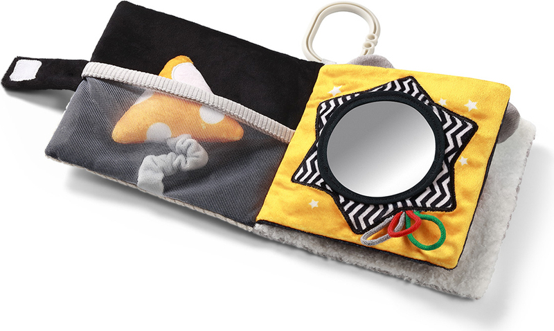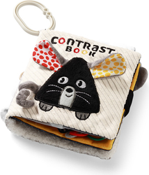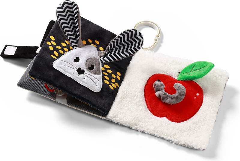A rugalmas rágóka masszírozza az ínyeket, és a különböző textúrák serkentik a tapintást. A könyv könnyű és kompakt, ideális a kis kezek számára. Ezt a magas kontrasztú könyvet fel lehet akasztani a kiságyra, babakocsira vagy autósülésre.