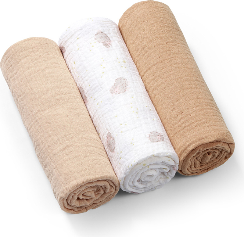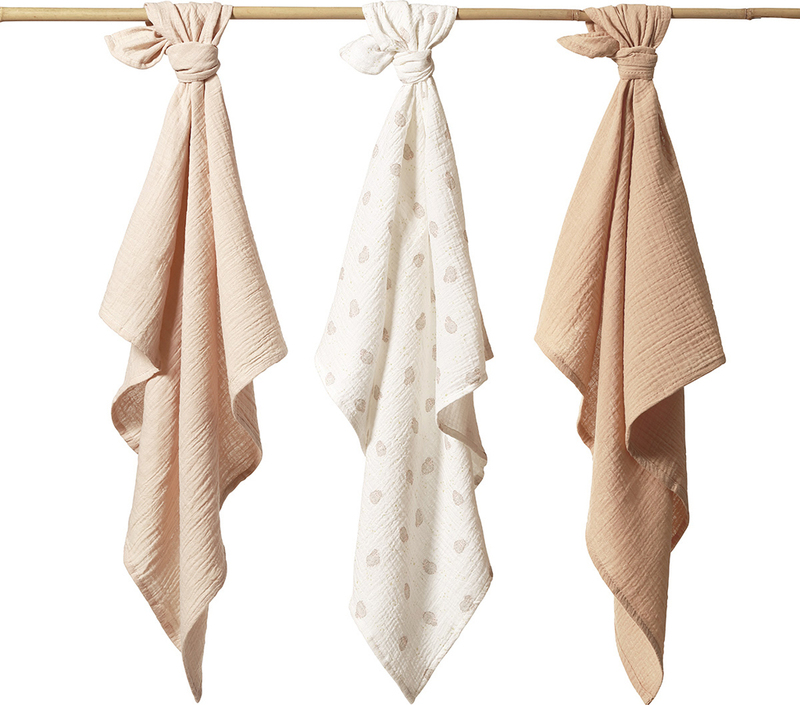 A muszlin pelenkák elengedhetetlenek az anyukák és a babák számára. 100%-ban természetes pamutból készültek, légáteresztőek és kíméletesek a baba bőréhez. A pelenkák nélkülözhetetlenek otthon és utazáskor egyaránt. Ideálisak pelenkázáshoz, fürdetéshez, altatáshoz és etetéshez. Értékelni fogja kivételes puhaságukat, könnyedségüket és szép megjelenésüket. Nem igényelnek vasalást, és minden mosással egyre puhábbak lesznek. A muszlin pelenkák készlete nagyszerű ajándék lehet a babának vagy az anyukának a kórházba.