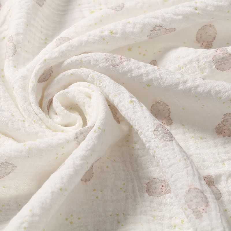 - Gyűrött szerkezet: Természetes gyűrött szerkezetének köszönhetően az anyag erősebb, tartósabb és sokkal ellenállóbb a kopással szemben, mint a standard muszlin. Ideális mindennapi használatra és sok évre. Nincs szükség vasalásra, és minden mosással még puhábbá válik. Tökéletes első ajándék a kisbabának.