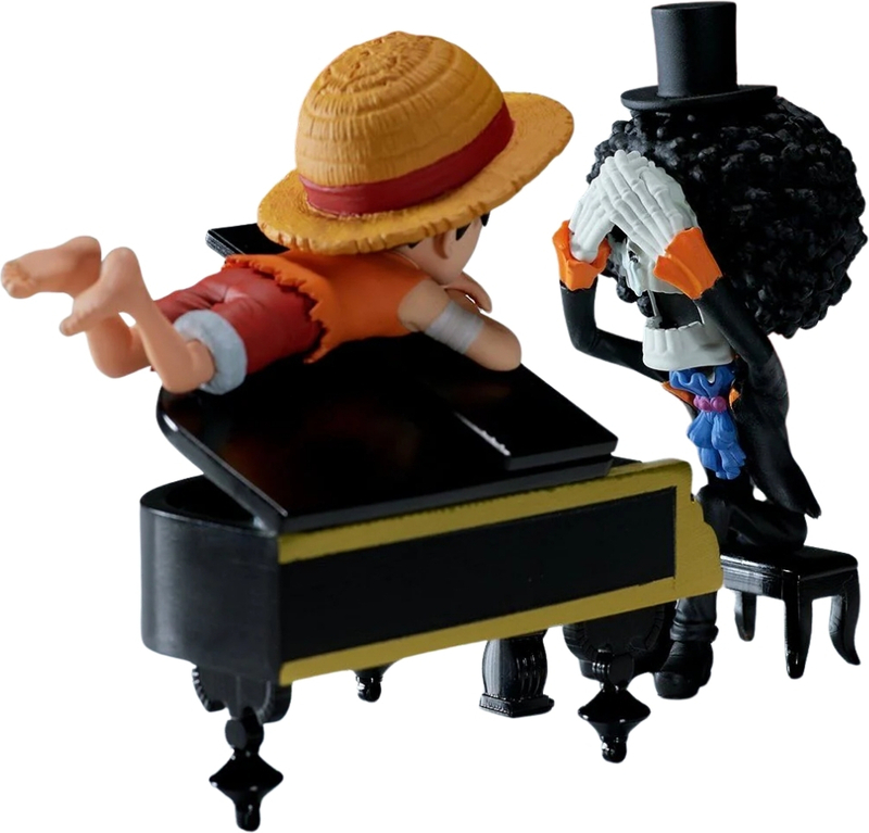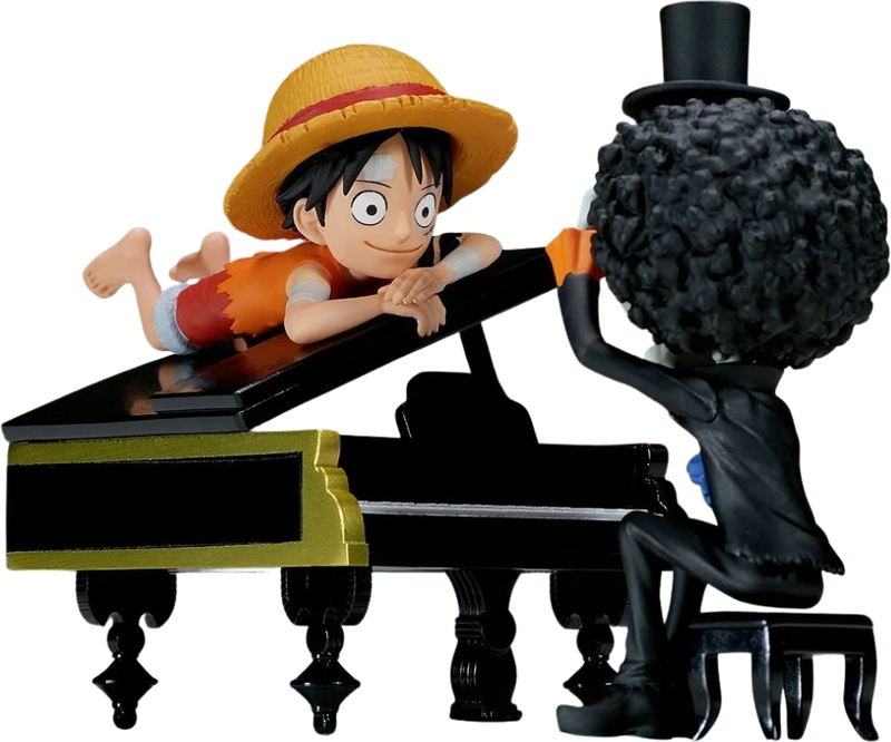 A jelenet a Bink's Sake örömét és a Nakama törhetetlen kötelékeit sugározza. A zongora arany részletekkel rendelkezik, és a figurák a WCF népszerű chibi stílusában vannak faragva. Szív, tökéletes minden kalóz kincséhez.