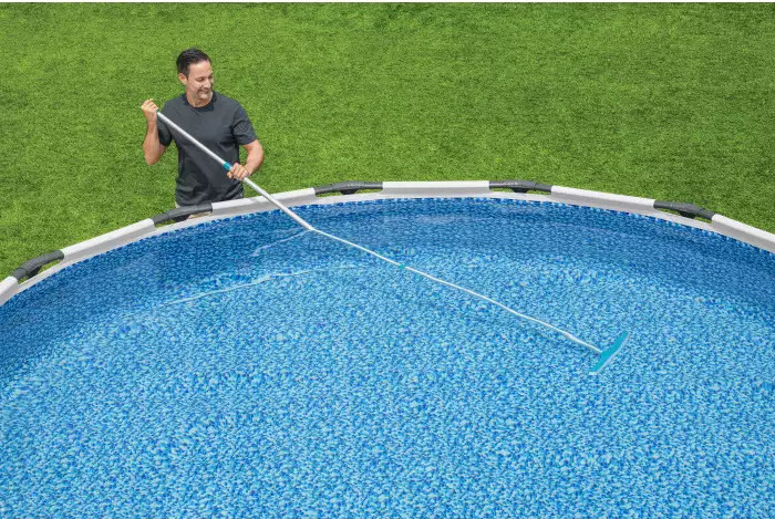 - Az ívelt seprű a nehezen elérhető medence sarkokat is kitisztítja