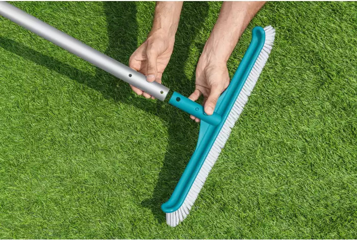 A Flowclear™ Aquabroom kefe adapter 30 mm átmérőjű nyelekhez alkalmas. Egyszerűen csatlakoztassa a kefét a nyélhez, és készen áll a medence tisztítására. Az Aquabroom kifejezetten a medence falán lévő algák és szennyeződések eltávolítására lett tervezve, és a kefe ívelt feje megkönnyíti a hozzáférést a medence minden sarkához, beleértve a nehezen elérhető helyeket is. A csatlakozó tüskéknek köszönhetően különböző hosszúságú nyeleket használhat, amennyiben a nyél belső átmérője 30 mm. Ha egyszerűen és hatékonyan szeretné megtisztítani medencéjét, szerezze be a Flowclear™ Aquabroomot.