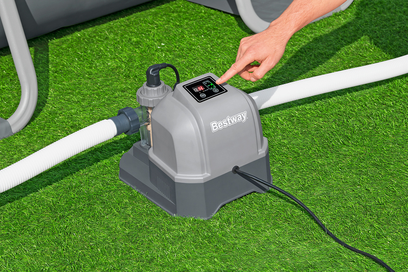 Ismerje meg a forradalmi Bestway® Hydrogenic klórgenerátort. Sóból klórt állít elő, és teljesen helyettesíti a hagyományos klórtablettákat. Élvezze a kristálytiszta vizet, amely kíméli bőrét, szemét és haját – a káros anyagoktól mentes fürdőélményért.