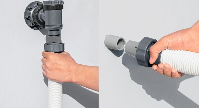 A biztonság ennél a modellen prioritás, amit a GS tanúsítvány (DEKRA) és az integrált áramvédő PRCD is megerősít. A 12 V transzformátor és a II. védelmi osztály maximális védelmet nyújt a működés során. A szivattyú rendkívül sokoldalú, és a mellékelt 32 mm-es adapterek révén széleskörű medencékhez csatlakoztatható, amelyek térfogata 1 100-tól 31 700 literig terjed.