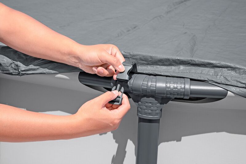 Felejtsd el a bonyolult szerkezeteket. A rögzítőkötelek segítségével pillanatok alatt feszítheted meg a takarót a medencén, így szélállóan biztosíthatod. Ennek köszönhetően még az erős őszi szél sem tudja a szennyeződéseket és a leveleket a medencédbe fújni. Az ügyes leeresztő nyílások emellett megakadályozzák, hogy az esővíz vagy a hó olvadékvíz a felületen felhalmozódjon. Így a súly csökken, a takaró könnyebbé válik, és neked tavasszal nem kell nehéz vízgyűjtő pocsolyákat eltávolítanod. Így a medencéd nemcsak biztonságosan átvészeli a telet, hanem tiszta is marad, és pillanatok alatt újra használatra kész lesz – a gondtalan új fürdőszezon kezdetéhez.