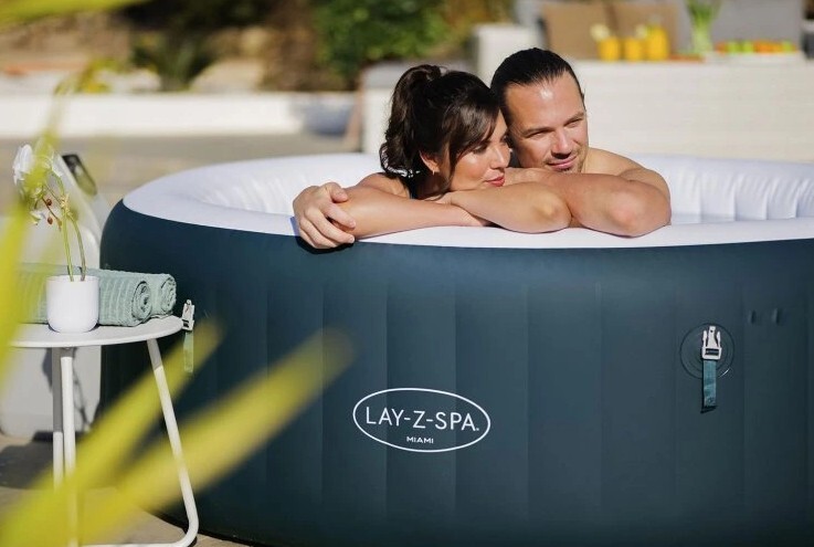 Mélyedjen el a pihenés világában az energiatakarékos Bestway® LAY-Z-SPA® Miami AirJet™ pezsgőfürdővel. A 196 cm átmérőjével és 66 cm magasságával ez a pezsgőfürdő akár 6 fő számára is helyet biztosít, és átalakítja kertjét vagy teraszát egy privát wellness oázissá.