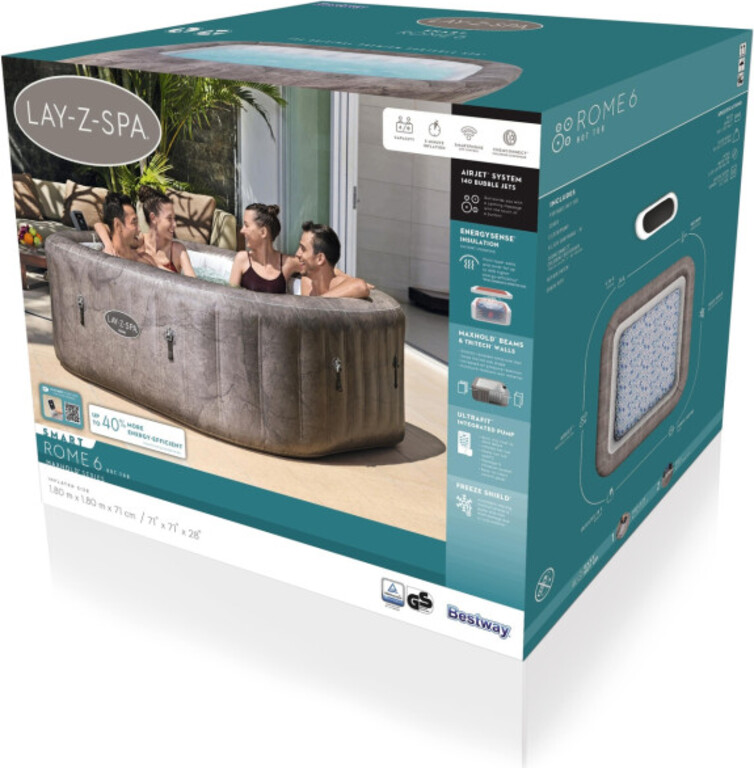 Bestway 6001K Pezsgőfürdő LAY-Z-SPA® Rome AirJet™ 6 személyre (Energiatakarékos) 180 x 180 x 71 cm