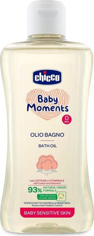 CHICCO Fürdőolaj pamuttal és E-vitaminnal Baby Moments Sensitive 93% természetes összetevő