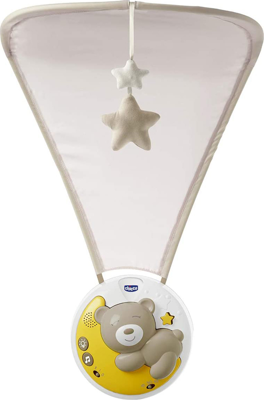 A Chicco Next2Moon bölcső fölötti projektor egy innovatív játék, amely a gyermeked megnyugtatására és elaltatására szolgál. Ötvözi a projektor varázslatos atmoszféráját és a széles baldachint, amely megnyugtató hatással van minden kisbaba számára, mivel a baldachin egy zártabb védő környezetet szimulál (kókuszhatás, amelyhez a mama hasában szokott hozzá).