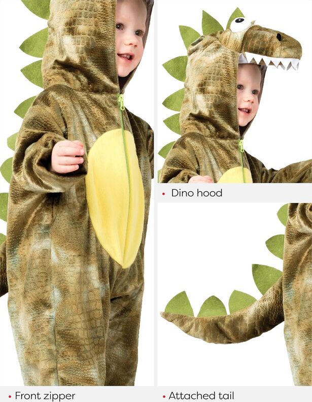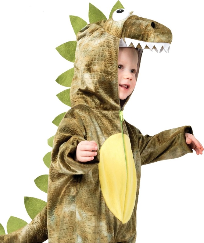Gyerek dínó jelmez a család legkisebb tagjának. Aranyos és cuki dínó overál, amely megkönnyíti a pelenkacsere folyamatát, farokkal és sapkával. Az overál dizájnja plüss állatkával, ideális nemcsak a kicsi átöltöztetésére, hanem ajándéknak és ünnepi öltözetnek is.