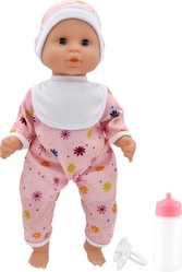 • Alvó szemekkel, egyedi cumival, sapkával, üveggel és cumival rendelkezik.