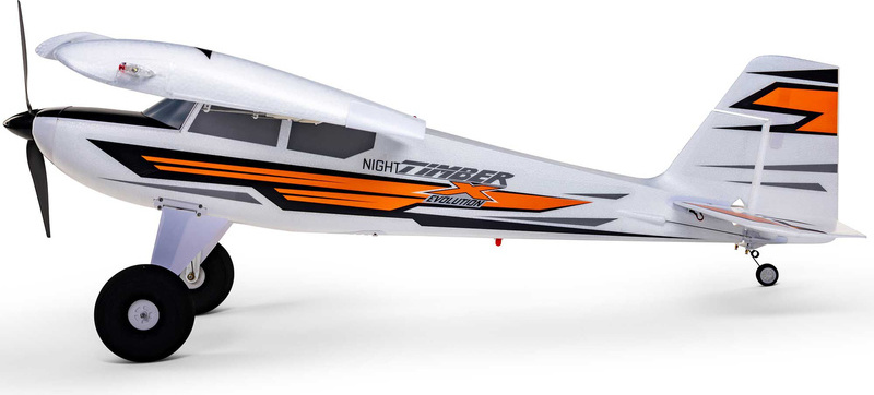A kompozit megerősítéssel készült üreges konstrukció EPO anyagból biztosítja a könnyű, de egyben nagyon tartós törzset. A Night Timber X Evolution 1,2 m modell emellett fejlettebb és megbízhatóbb szervókkal van felszerelve, amelyek fém áttételekkel rendelkeznek, és pontos irányítást biztosítanak, függetlenül a repülési stílusától.