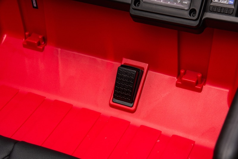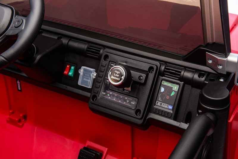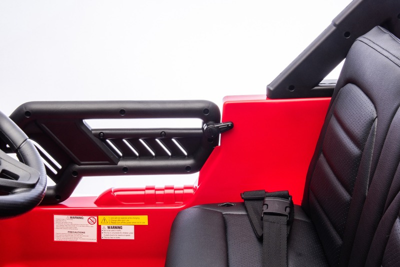 Kisebb gyermekek számára is alkalmas – a sebesség alacsonyabbra állításának lehetősége, a biztonsági övek és a folyamatos indulás miatt. A csomag tartalmaz: adaptert jelzőfénnyel (nem tölti túl az akkumulátort), tölthető akkumulátort és távirányítót.