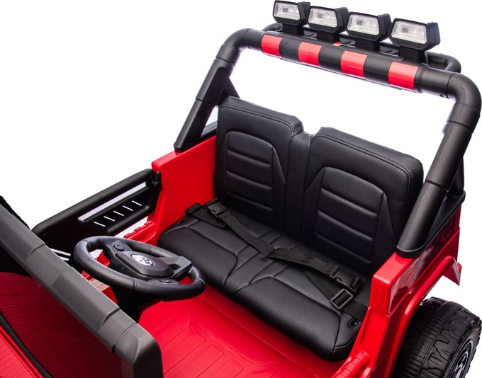 Licencált elektromos autó Toyota FJ Cruiser XXL (Kétüléses) 4X4 meghajtással ÚJDONSÁG: Lítium akkumulátor 22.2V4.5AH A Toyota FJ Cruiser XXL autó kényelmesen alkalmas két gyermek számára, az ülések szélessége 58 cm. A magas futóműnek köszönhetően, amely felfüggesztett hátsó tengellyel és dupla üléssel rendelkezik, kényelmes utazást biztosít egyenetlen terepen is. Az autó világító lámpákkal és innovált audio egységgel van felszerelve, modern zenével és USB/AUX valamint BLUETOOTH csatlakozással. A gyermek biztonsága érdekében az ülésen állítható biztonsági öv található két gyermek számára. LED lámpák a fénycsíkon is a nagyobb láthatóság érdekében sötétben.Távirányító – 2,4 GHz-es távirányító, amely párosítható a konkrét autóval. Teljes kontrollt biztosít a jármű felett, alacsony, közepes és magas sebesség beállítását, valamint a vészfékezés aktiválását is lehetővé teszi.
