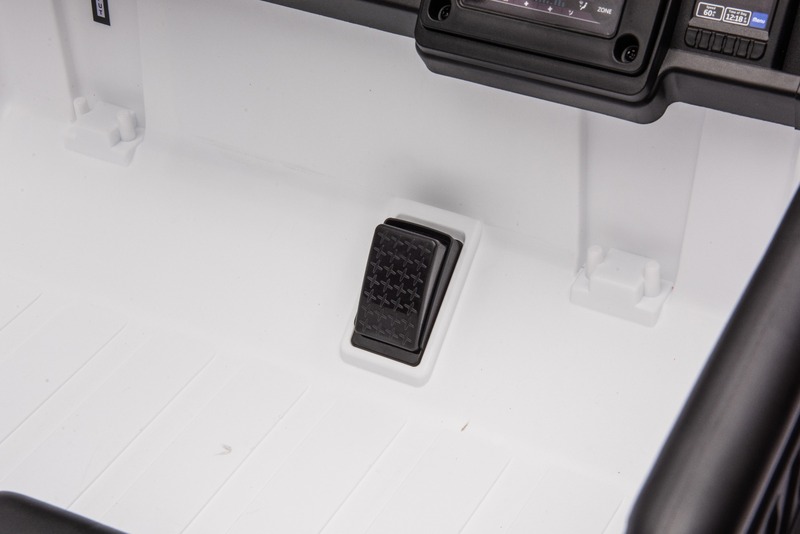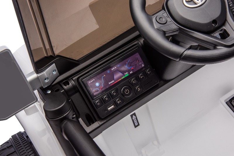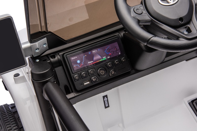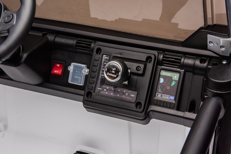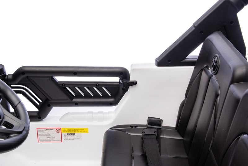 Kisebb gyermekek számára is alkalmas – az alacsonyabb sebesség beállításának, a biztonsági öveknek és a folyamatos elindulásnak köszönhetően. A csomag tartalmaz: adaptert jelzőfénnyel (nem tölti túl az akkumulátort), tölthető akkumulátort és távirányítót.