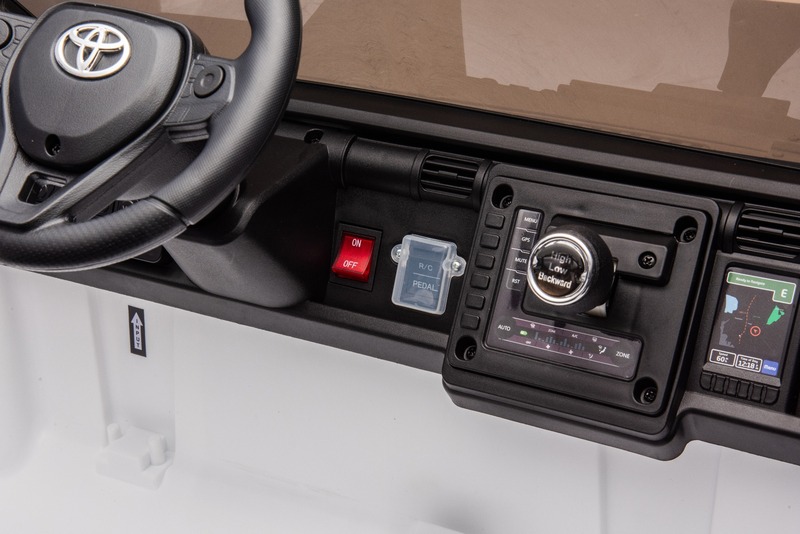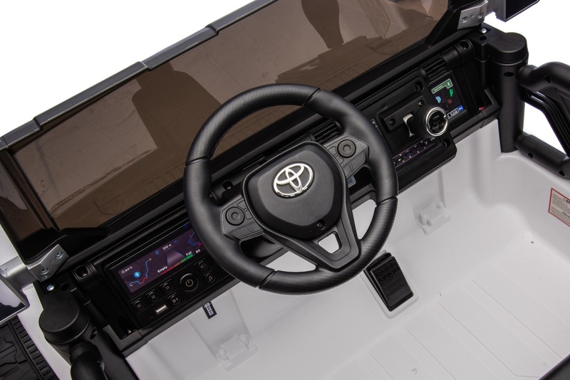 Licencált elektromos autó Toyota FJ Cruiser XXL (Kétüléses) 4X4 meghajtással ÚJDONSÁG: Lítium akkumulátor 22.2V4.5AH A Toyota FJ Cruiser XXL autó kényelmesen alkalmas két gyermek számára, az ülések szélessége 58 cm.Magas hasmagasságának köszönhetően, felfüggesztett hátsó tengellyel és dupla üléssel kényelmes utazást biztosít egyenetlen terepen is. Az autó világító lámpákkal és innovált audio egységgel van felszerelve, modern zenével, USB/AUX bemenettel és BLUETOOTH csatlakozással. A gyermek biztonsága érdekében az ülésen állítható biztonsági öv található két gyermek számára. LED lámpák a fénycsíkon is a nagyobb láthatóság érdekében sötétben.
