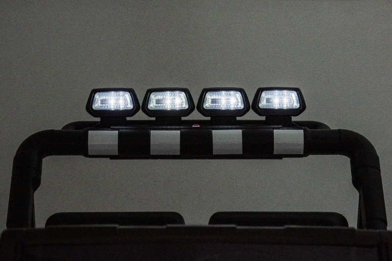 4×4 meghajtás magas hasmagassággal – A meghajtást négy 55 W-os motor biztosítja minden keréken, így az autó terepre is alkalmas. A hátsó tengely felfüggesztett, ami növeli az utazás kényelmét.