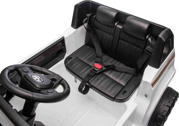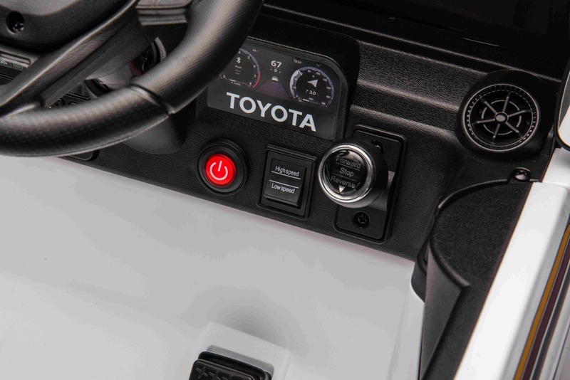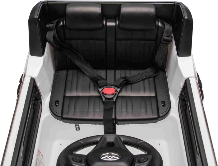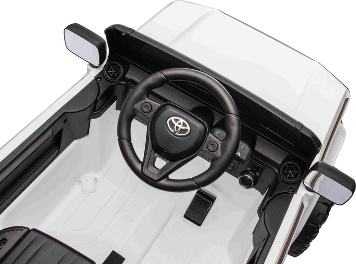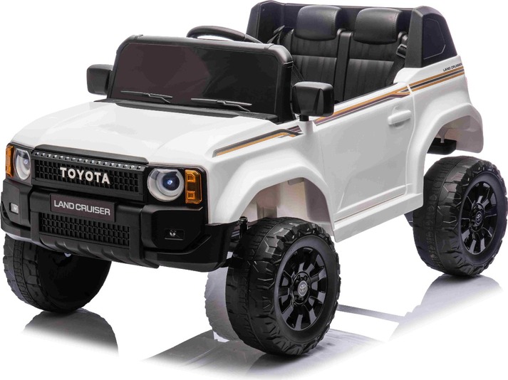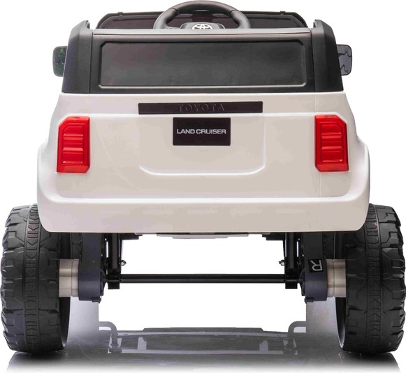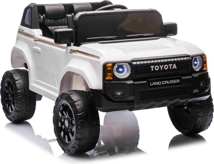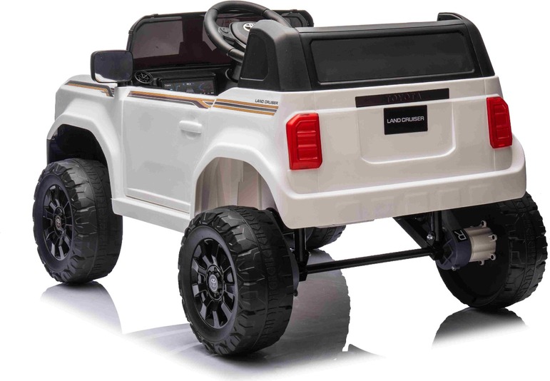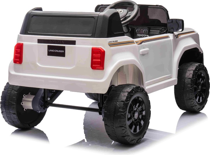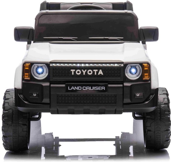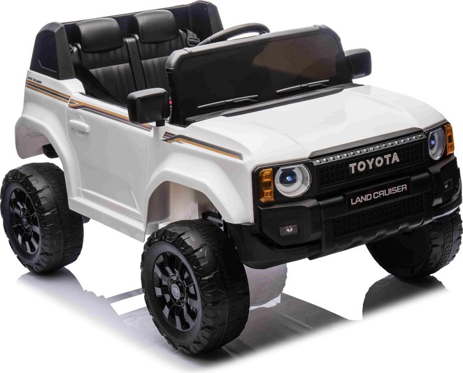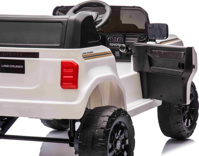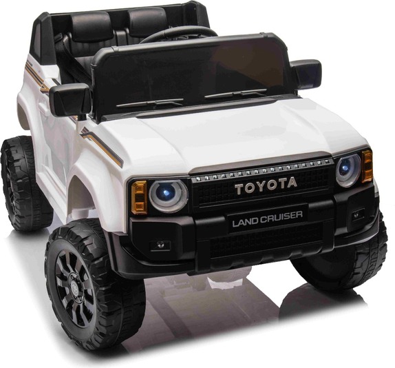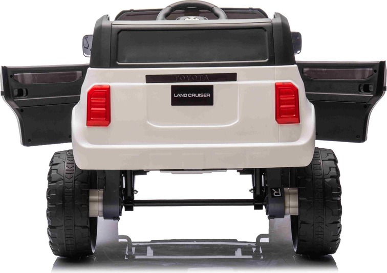 Elektromos kisautó Toyota Landcruiser 12V, fehér, széles egyszemélyes ülés, 2,4 GHz táv