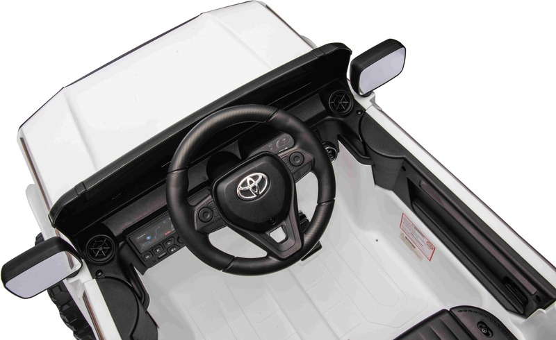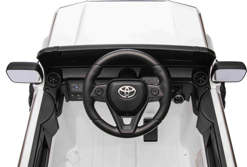 Licencált elektromos autó Toyota Landcruiser ÚJDONSÁG: Lítium akkumulátor (12V/4Ah) A legújabb Toyota Land Cruiser modell gyerekeknek ötvözi a luxus megjelenést és a modern technológiákat egyben. A precízen kidolgozott dizájnt vonzó funkciók egészítik ki, mint például MP3 lejátszó USB/AUX bemenettel és Bluetooth kapcsolattal, miközben a hanghatások hangereje egyszerűen szabályozható közvetlenül a lejátszón.Természetesen a zenelejátszás, a elülső LED világítás és az akkumulátor kapacitásának állapotjelzője is rendelkezésre áll, amely tájékoztat a fennmaradó kapacitásról voltokban. Multifunkciós kormánykerék - A kürt és a zene váltásának vezérlésére szolgáló gombokkal. Az autó 2,4 GHz-es új generációs távirányítóval van felszerelve, amely világító indítókapcsolóval rendelkezik egy gombnyomásra.