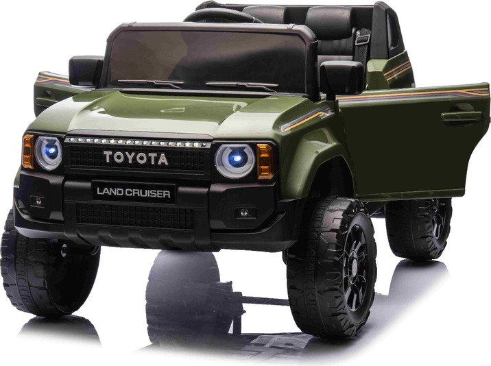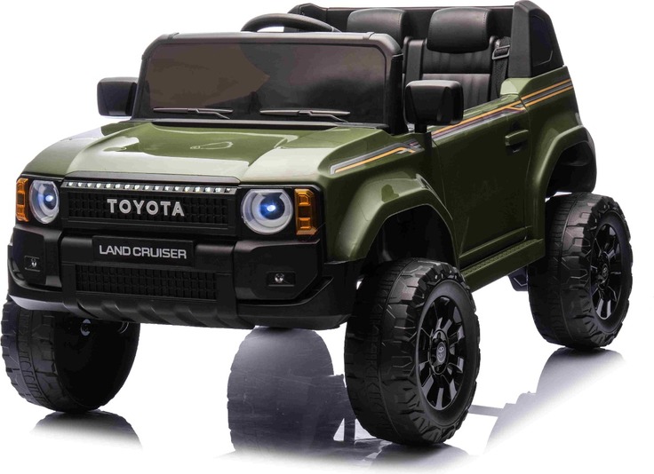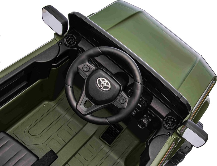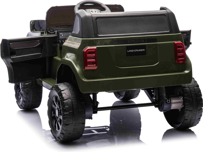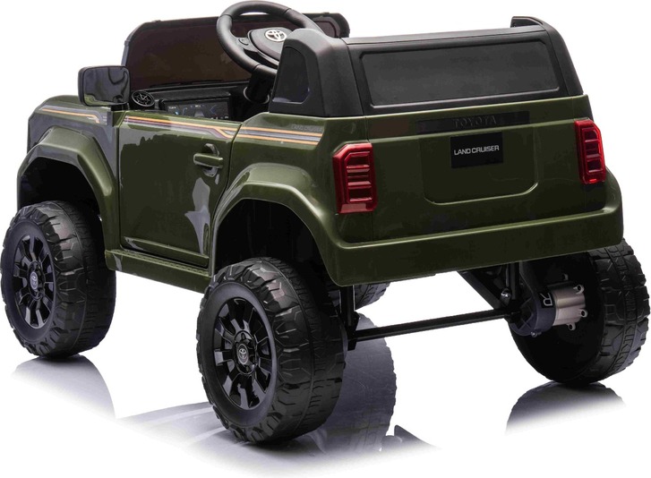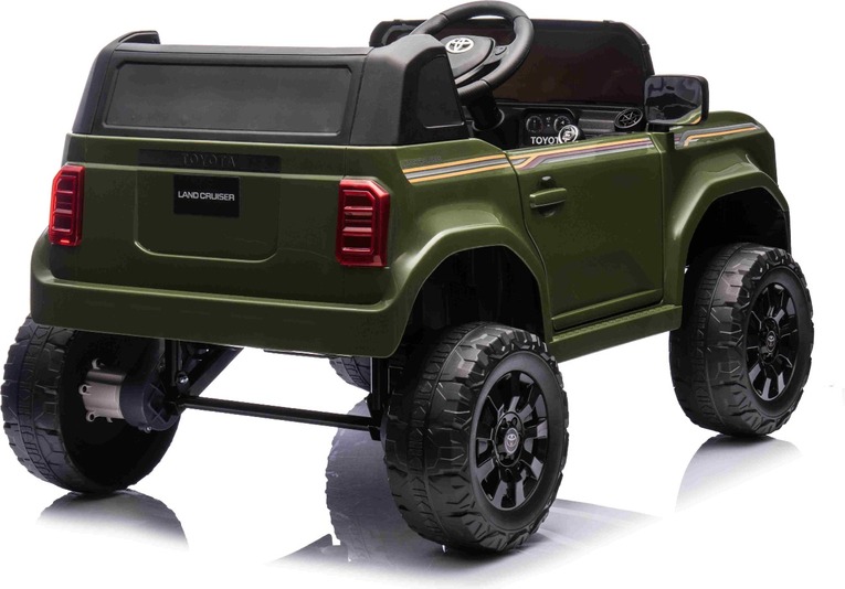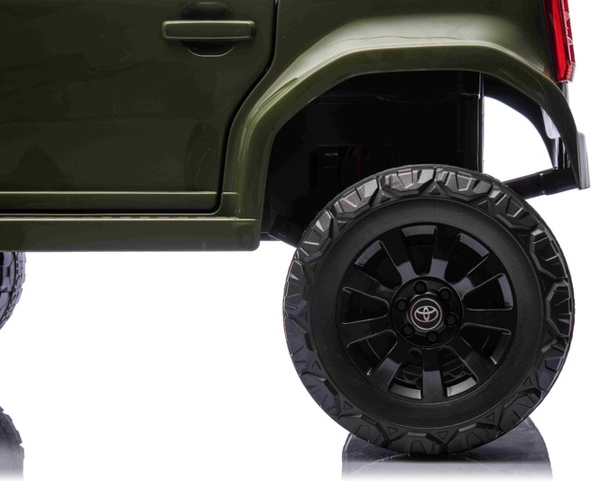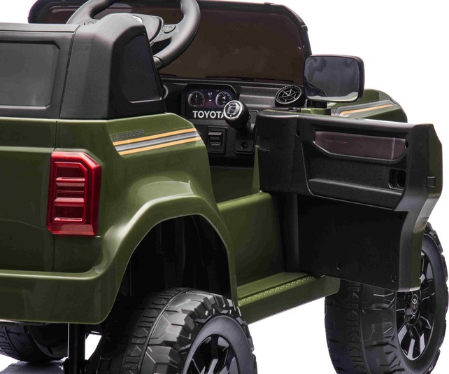 Elektromos kisautó Toyota Landcruiser 12V, katonai zöld, széles egyszemélyes ülés, 2