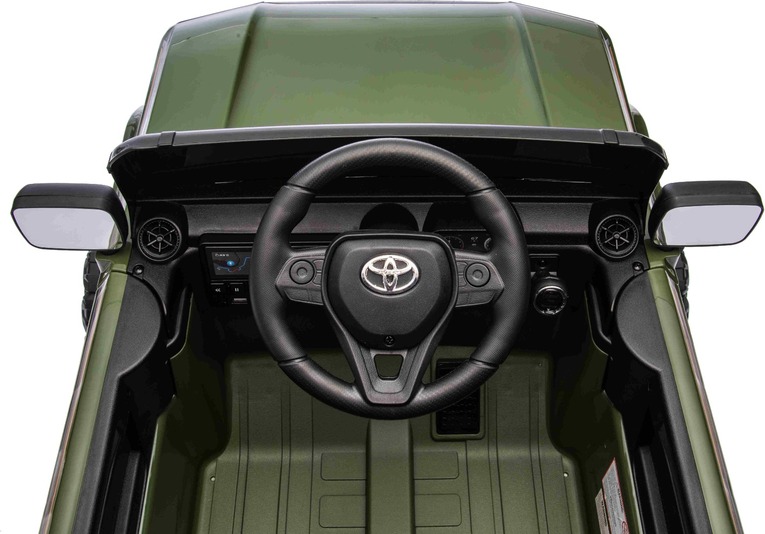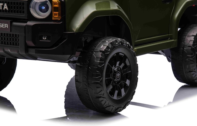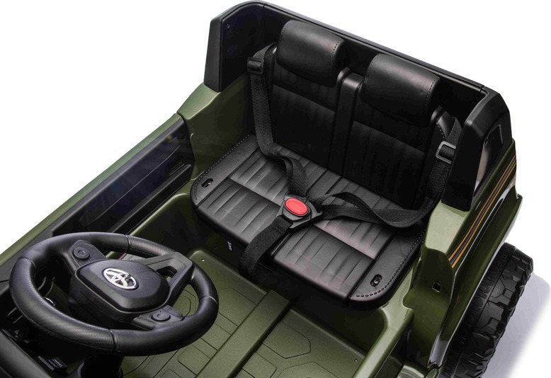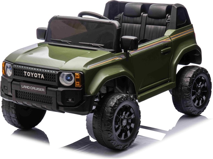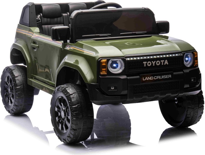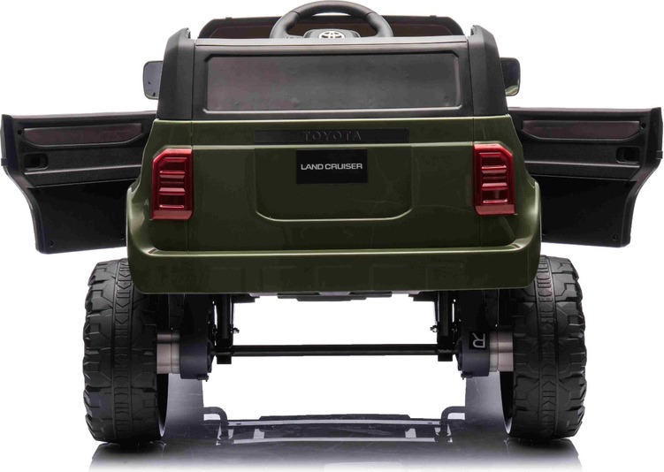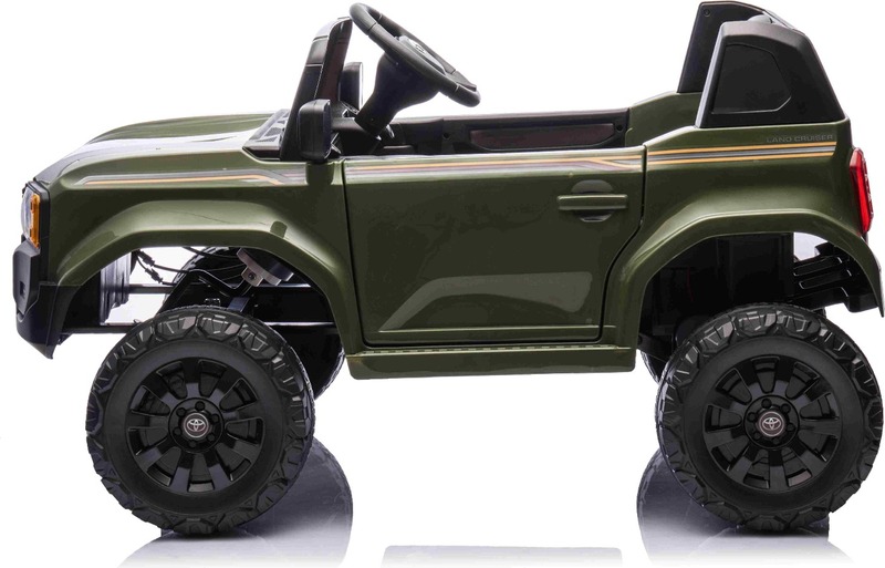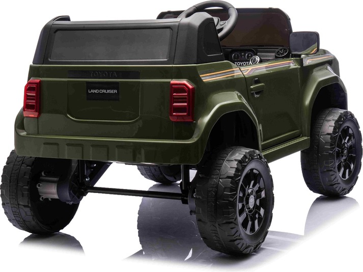 Elektromos kisautó Toyota Landcruiser 12V, katonai zöld, széles egyszemélyes ülés, 2