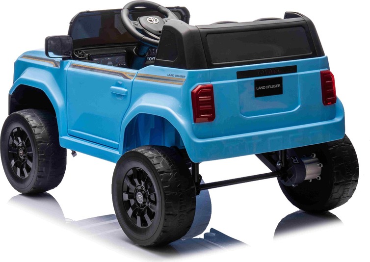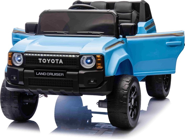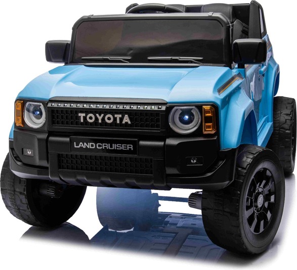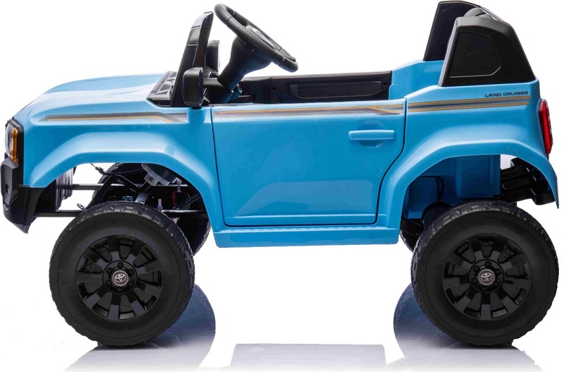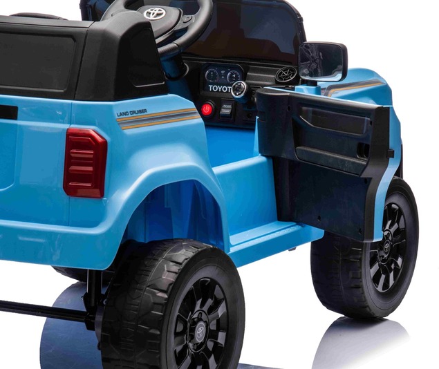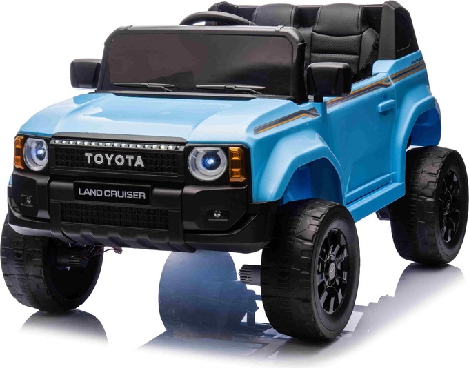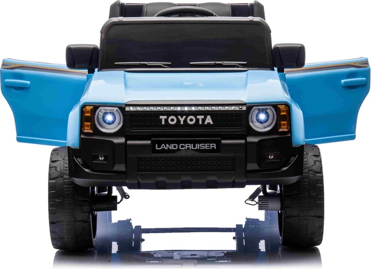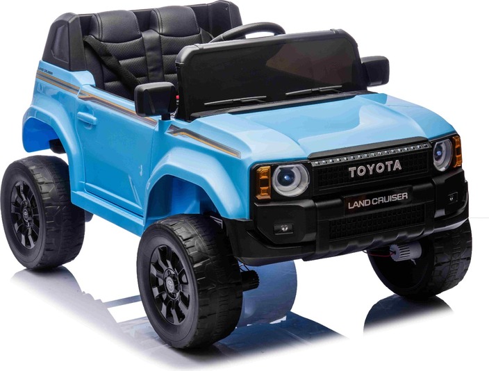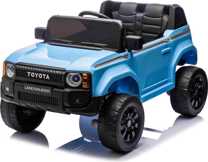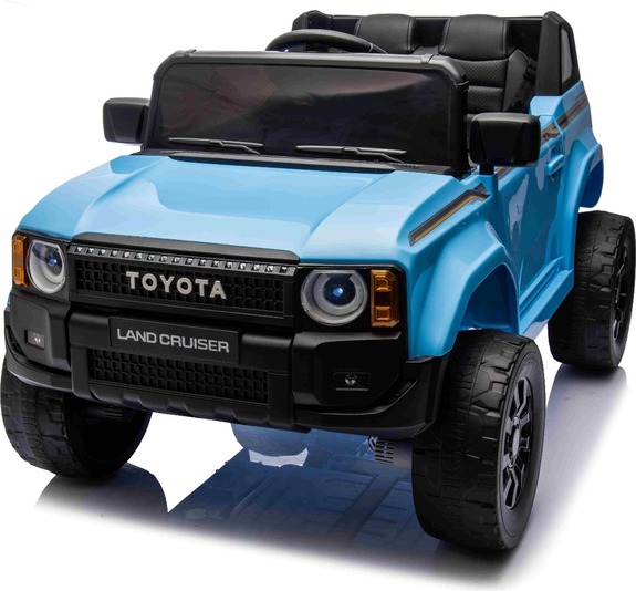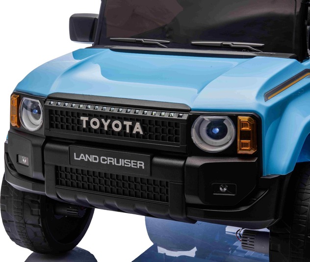 Elektromos kisautó Toyota Landcruiser 12V, kék, széles egyszemélyes ülés, 2,4 GHz távirányító