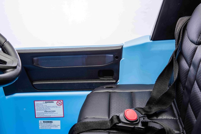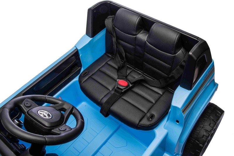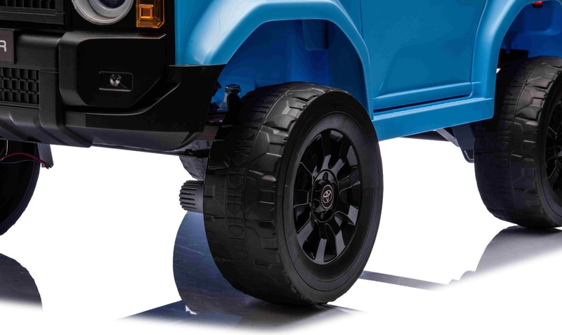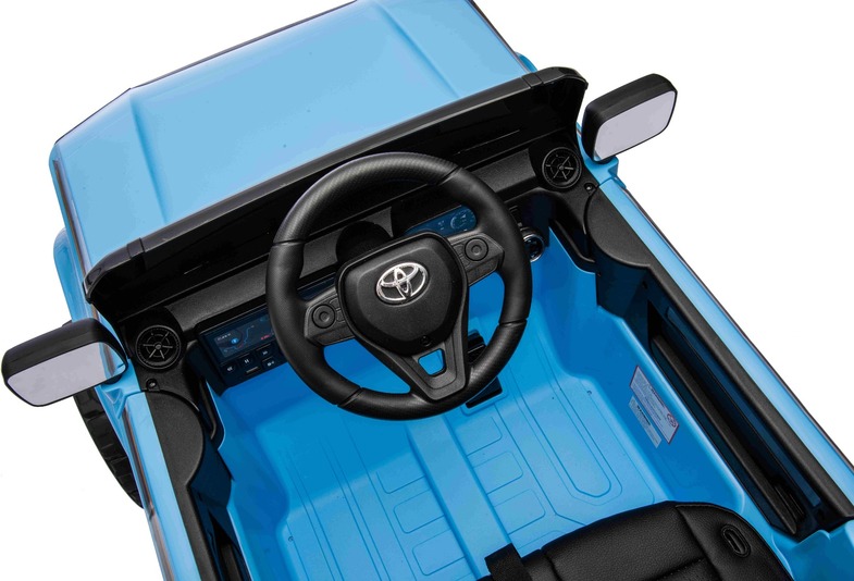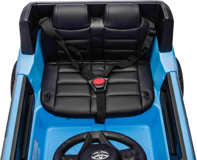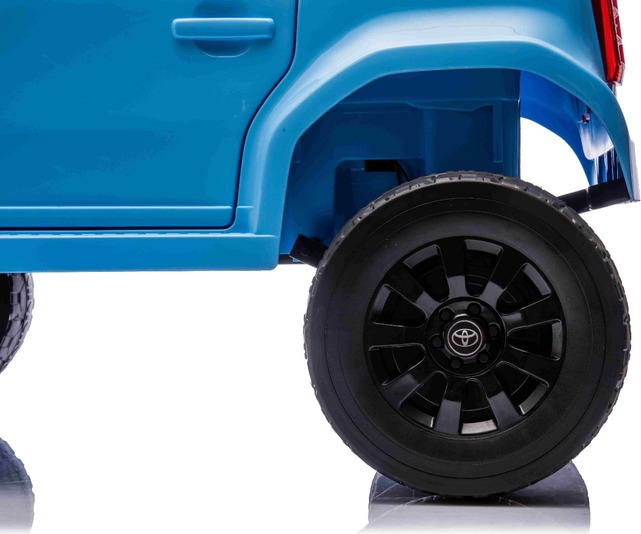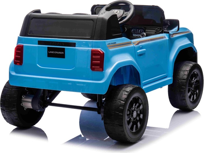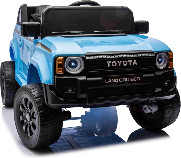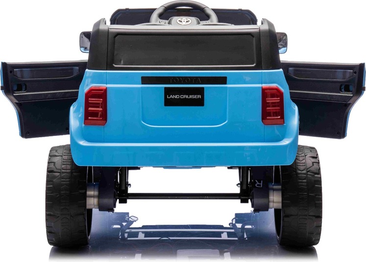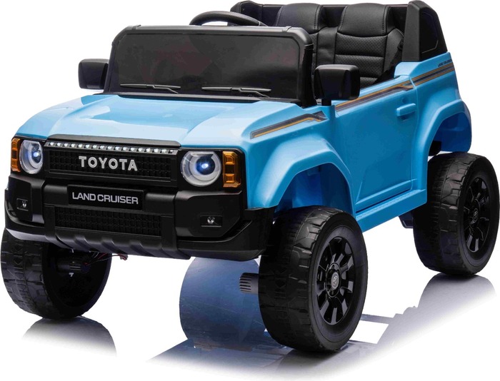 Elektromos kisautó Toyota Landcruiser 12V, kék, széles egyszemélyes ülés, 2,4 GHz távirányító