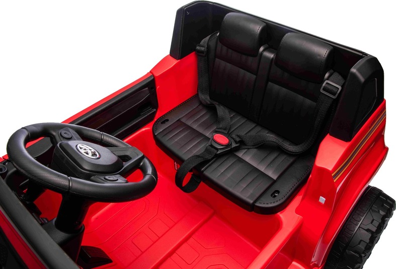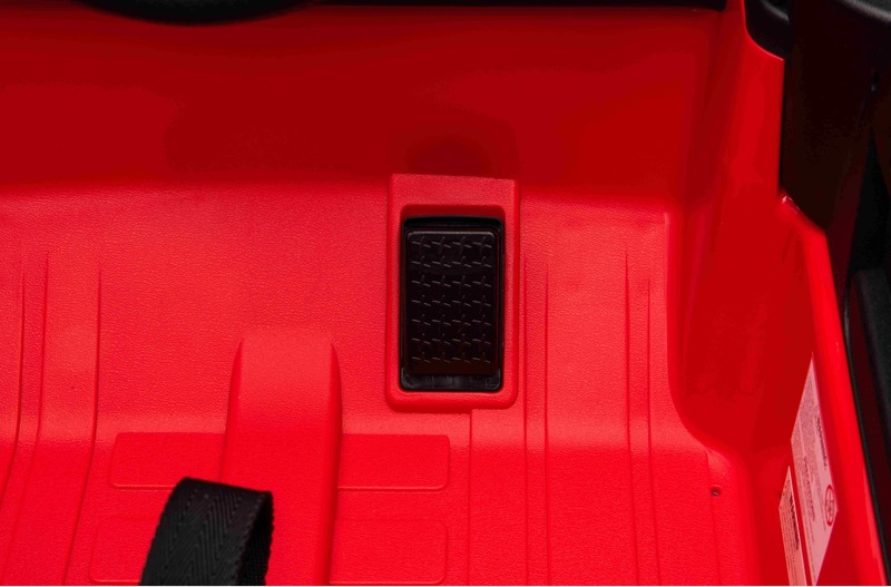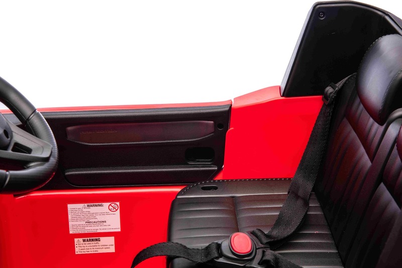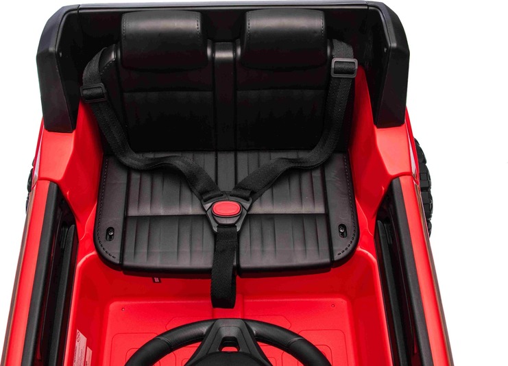 Multifunkciós kormánykerék - A kürt és a zene váltásának vezérlésére szolgáló gombokkal. Az autó 2,4 GHz-es új generációs távirányítóval van felszerelve, amely világító indítógombbal rendelkezik. A biztonságról a távirányítón található vészfékező gomb gondoskodik, amely szükség esetén azonnal deaktiválja az összes funkciót, így a szülő teljes ellenőrzést nyer a vezetés felett. A biztonsági öv is rendelkezésre áll, amely biztonságot nyújt a vezetés során.