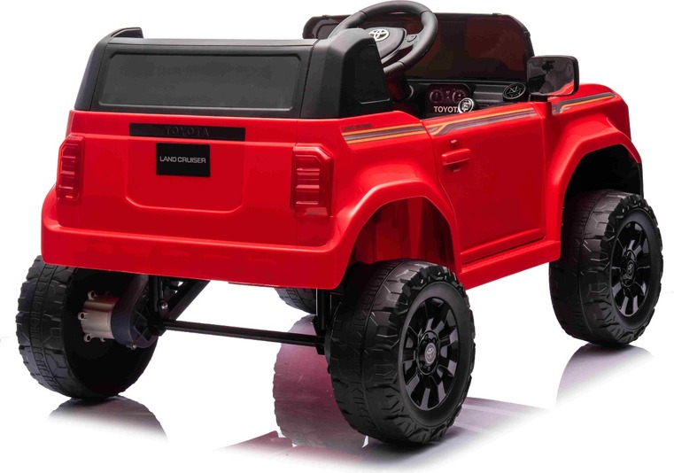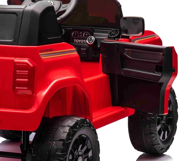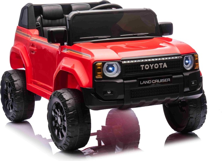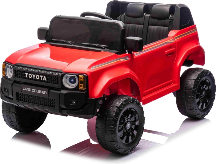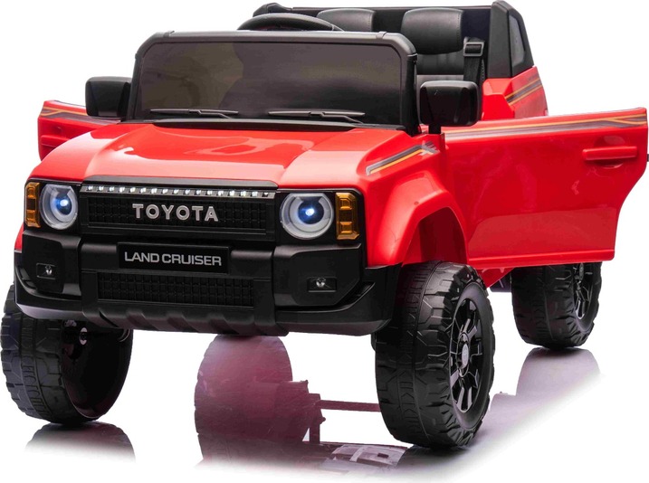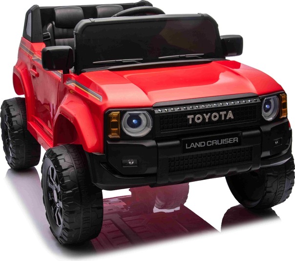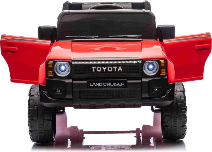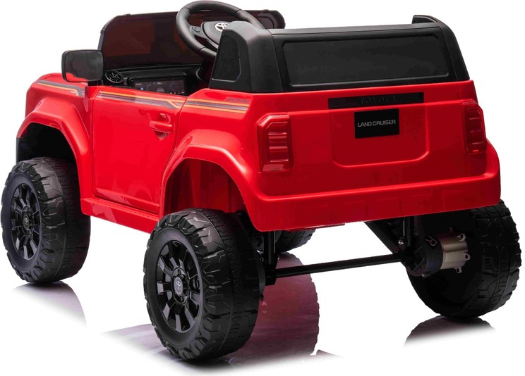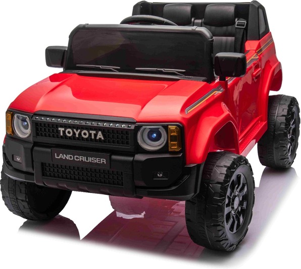 Elektromos kisautó Toyota Landcruiser 12V, piros, széles egyszemélyes ülés, 2,4 GHz d