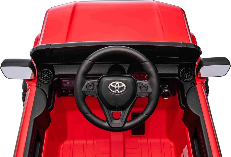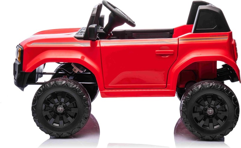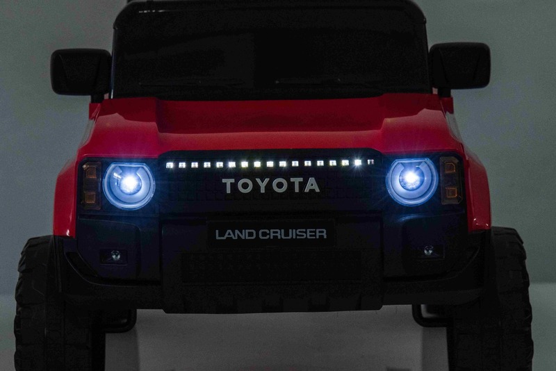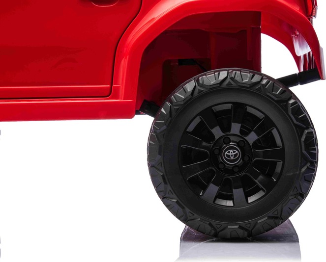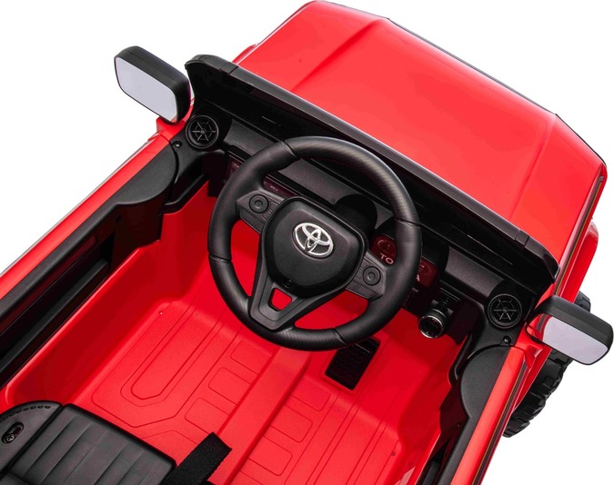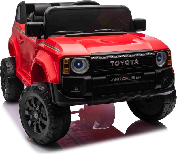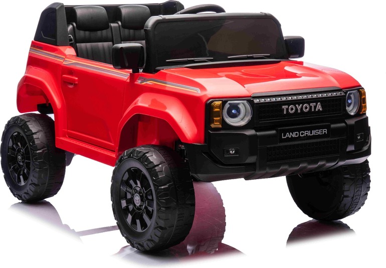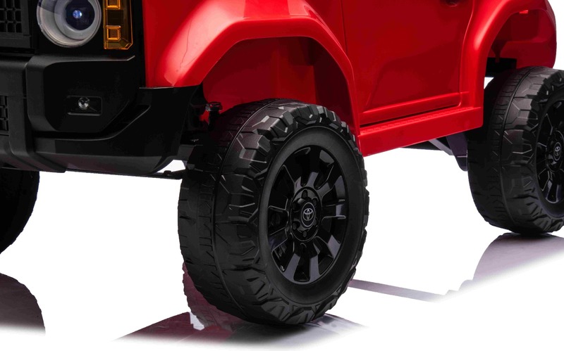 Elektromos kisautó Toyota Landcruiser 12V, piros, széles egyszemélyes ülés, 2,4 GHz d