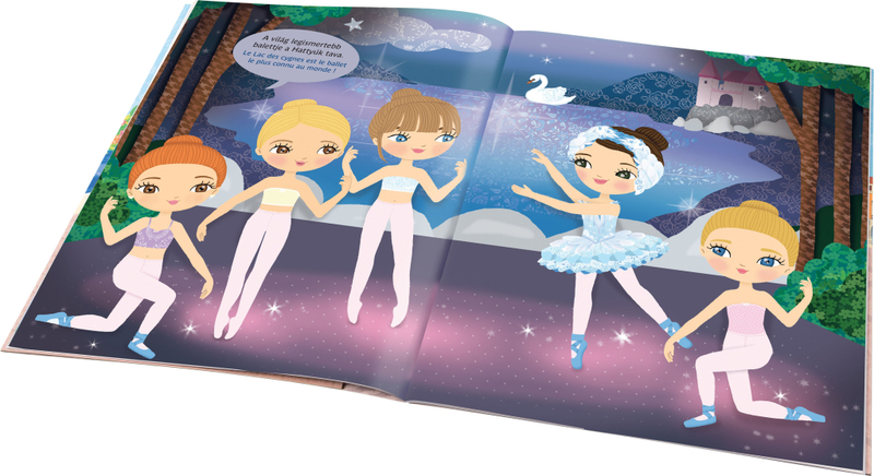 A lányok különösen kedvelni fogják a közel 300 csinos balettruha-matricát, és nem utolsósorban a képeket kísérő kétnyelvű szövegeket is.