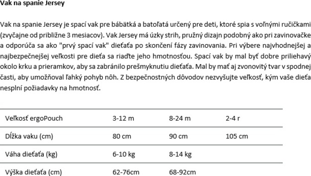 Az ujjas hálózsák egy egész évben használható hálózsák csecsemők és kisgyermekek számára, akik kinyújtott karral alszanak, általában 3 hónapos kortól. A Jersey hálózsák vékony szabású, rugalmas kialakítású, mint a pólya, és babák "első hálózsákjaként" ajánlott a pólyás fázis után. A biztonságos alvásra jóváhagyott kialakítás puha, elasztikus, GOTS tanúsítvánnyal rendelkező biopamutból készült, amely nem mérgező és gyengéd a baba bőréhez. Az ergonómikus kialakítású táska csípőfeneke támogatja az egészséges csípőfejlődést, és a Nemzetközi Csípődiszplázia Intézet jóváhagyásával rendelkezik, anyaga pedig rugalmas, hogy a baba szabadabban mozoghasson alvás közben, és kényelmesen tudjon maradni. A hozzáadott ujjak valamivel több meleget biztosítanak a hidegebb éjszakákon, vagy a táska ideális azoknak, akiknek a testhőmérséklete természetesen hűvösebb.