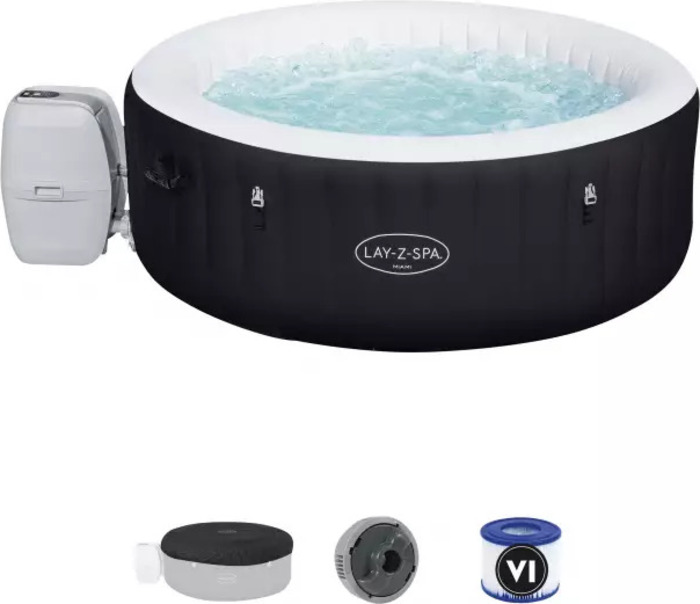 A belsejében mindent megtalál, amire szüksége van a működtetéshez és karbantartáshoz, például egy vegyi úszót, amely folyamatosan elosztja a klórt a fürdőben, egy szűrőrendszert szűrőbetéttel és egy fedelet, amely védi a pezsgőfürdőt inaktív időszakokban. Jellemzők: