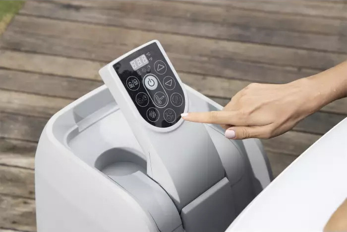 Ez az innovatív rendszer lehetővé teszi a szivattyú számára, hogy hosszú ideig, alacsony hőmérsékleten és energiatakarékos üzemmódban működjön, így megakadályozza a víz megfagyását a tartályban, hogy elkerülje a belső szerkezet károsodását; így egész évben élvezheti a fürdőzést!A Palm Springs pezsgőfürdő rendkívül könnyen felfújható, és rendelkezik egy vezérlőpanellel a víz hőmérsékletének és különböző funkcióinak beállításához, beleértve a bekapcsolás és kikapcsolás időzítésének lehetőségét egy speciális időzítő segítségével, amely lehetővé teszi a víz hőmérsékletének szabályozását akár 72 órával előre.