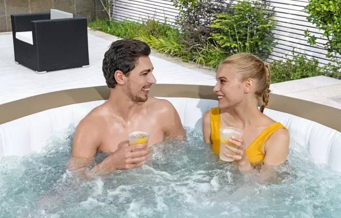 A forró vízben való pihenés álma, miközben otthon koktélt iszogatunk, végre valóra válhat a Bestway Spa-Lay-Z Spa sorozat Palm Spring Airjet felfújható pezsgőfürdőjének köszönhetően!