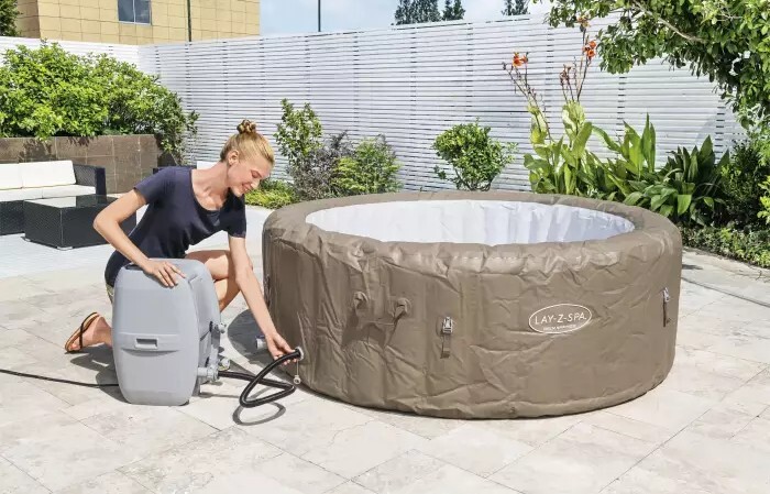 A Bestway Palm Springs felfújható pezsgőfürdő a Lay-Z kollekció egyik legnépszerűbb modellje, és multifunkcionális szivattyúval van felszerelve, amely egyszerre képes felfújni a pezsgőfürdőt, felmelegíteni a vizet és szűrni, hogy mindig maximális tisztaságot biztosítson a vízben és aktiválja a masszázsrendszert.