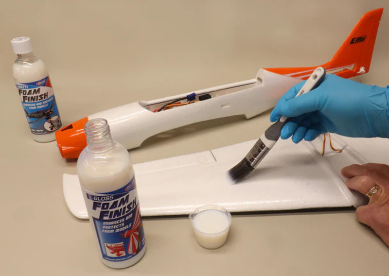 Foam Finish glossy - egy gyanta a habmassza és habmodellek (EPP, EPS, EPO) megerősítésére, védelmére és megjelenésének javítására. Utolsó rétegként szolgál, amely kemény, karcálló, de félig rugalmas. A gyanta ragadós és könnyen csiszolható. Üvegszövettel is használható a még keményebb felület érdekében. Erősíti, rögzíti a részleteket, matricákat, a legtöbb színt, száradás után pedig átfesthetők. A gyantát nem kell keverni, alig van szaga vagy nincs szaga, és a modellek hosszabb ideig úgy néznek ki, mint az újak.