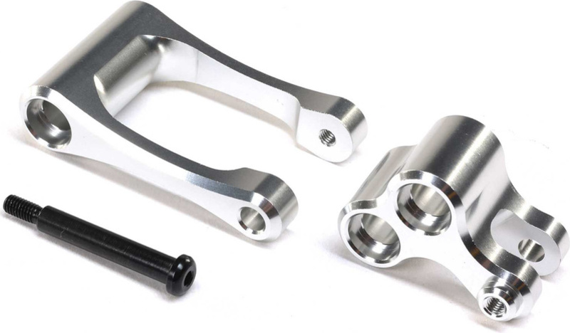 Cserealkatrész a Losi 1:4 Promoto-MX RC motoros modellhez: ezüst színű gömbcsukló és rúd, alumínium