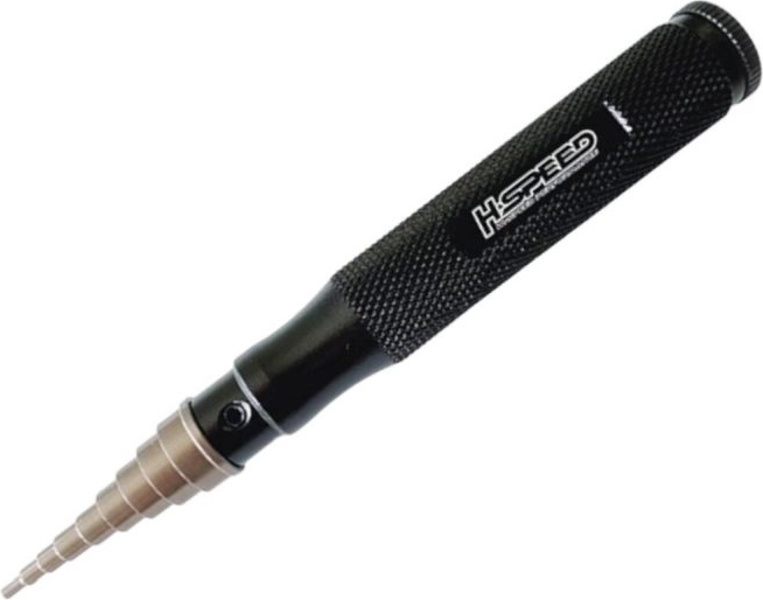 A H-Speed csapágykihúzó egy praktikus eszköz a csapágyak beszerelésére és eltávolítására. Alumínium fogantyúval rendelkezik, amelynek hossza 120 mm és átmérője 18 mm, csúszásmentes keresztbordázattal. Lépcsős kialakítás a csapágyak belső átmérőjéhez 2-14 mm (lépcsők átmérője: 2, 3, 4, 5, 6, 8, 10, 12, 14 mm).