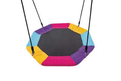 Ez a „repülő“ tányéros hinta egy párnázott külső gyűrűvel van felszerelve a kényelem és a biztonság érdekében, valamint egy tartós hálós aljjal a plusz támaszért.