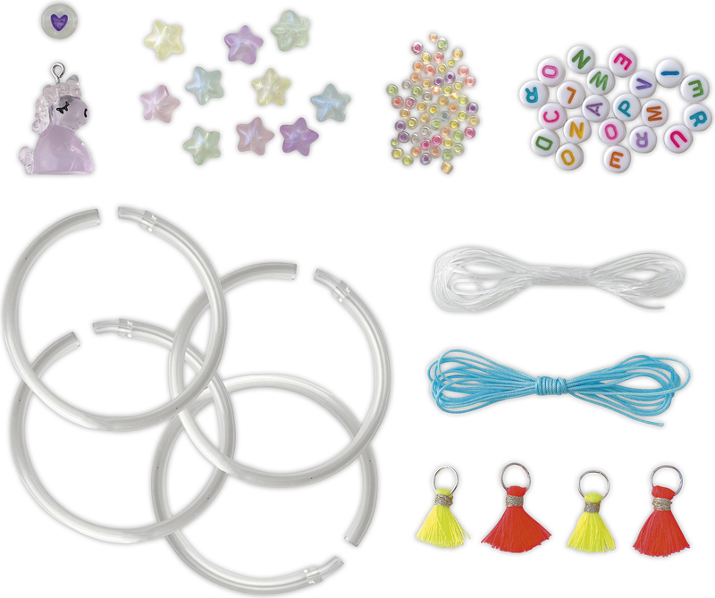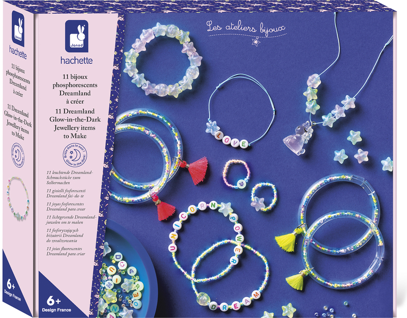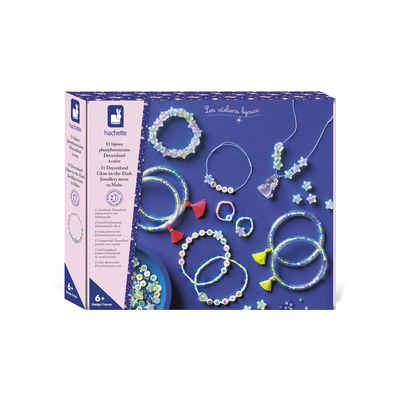 Hány ember látta már a sötétben világító unikornist? Mostantól Ön is közéjük tartozik ezzel a készlettel, amely 11 db 100%-ban foszforeszkáló ékszert készít: 8 karkötőt, 2 gyűrűt és 1 nyakláncot.Tartalmaz fénylő gyöngyöket, medálokat és fonalakat: 1 unikornis medál, 25 csillaggyöngy, 1 szív alakú gyöngy, körülbelül 550 kásagyöngy, 21 betűgyöngy, jáde fonal, rugalmas fonal, 4 karkötő műanyag csövekkel a gyöngyök feltöltésére, 4 fluoreszkáló pompon és 1 útmutató füzet javaslatokkal.