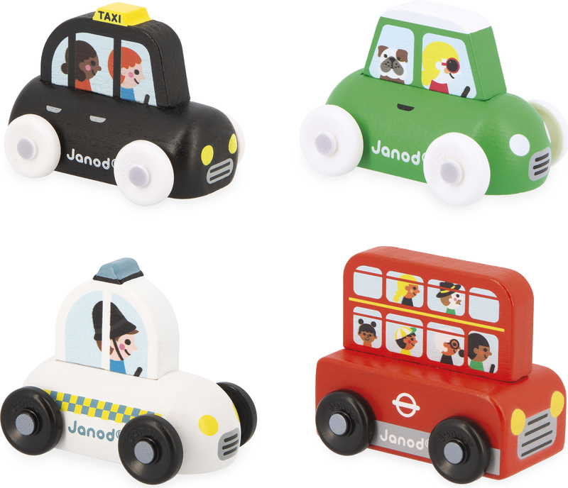 Induljon el egy kirándulásra Nagy-Britanniába ezzel a 4 aranyos gyűjthető járművel!Ez a kiállítás négy járművet tartalmaz: egy piros emeletes buszt tele turistákkal, akik készen állnak a város felfedezésére, egy londoni taxit, egy rendőrautót egy hagyományos brit sapkás rendőrrel és egy kis zöld városi autót egy szórakoztató bulldoggal a fedélzeten! Ezek a járművek különösen úgy lettek tervezve, hogy a kis kezek könnyen kezelhessék őket.