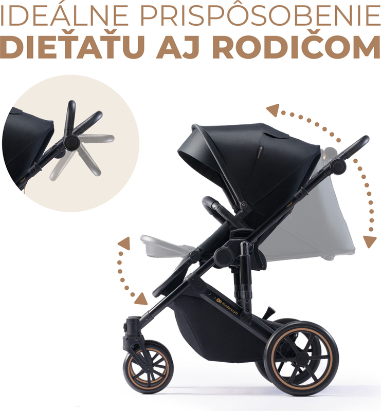 KINDERKRAFT SELECT Kombinált babakocsi 3 az 1-ben Prime 2 Venezian Black, Premium
