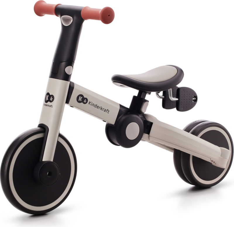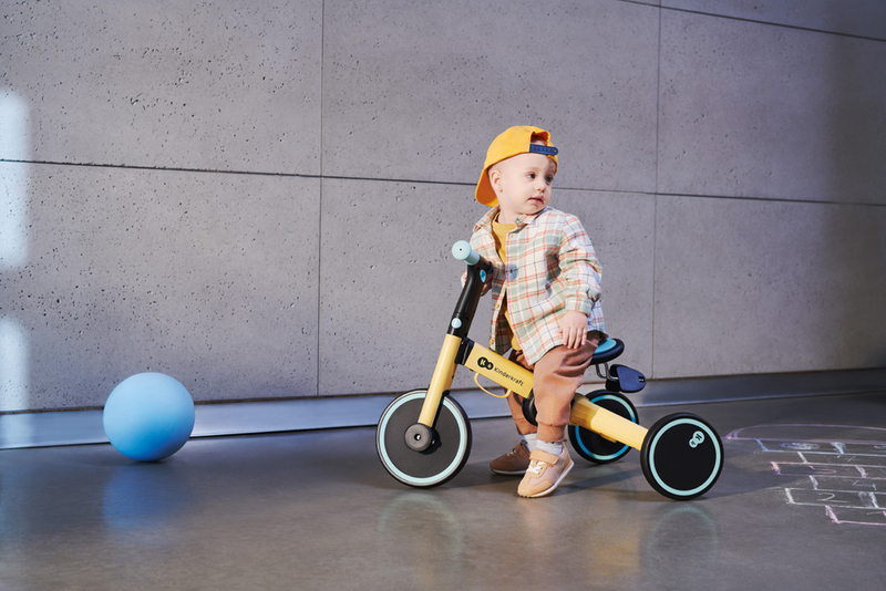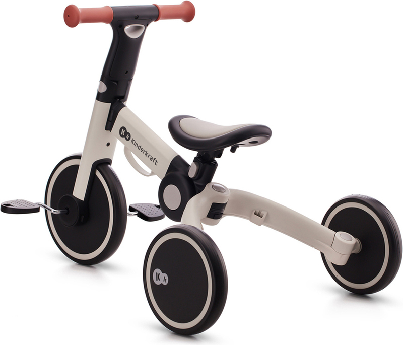A 4TRIKE 1 éves kortól gyermekek számára készült. Három funkciót egyesít: egy mini tolókereket, egy mini lökhárítót és egy pedálos triciklit. A funkció megváltoztatásához nincs szükség semmilyen eszközre, és pillanatok alatt megteheti – akár séta közben is.