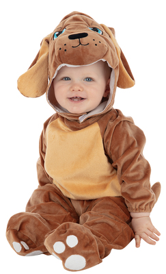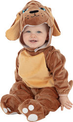 Gyerek kutyás jelmez a család legkisebb tagja számára. Aranyos és cuki overall, amely megkönnyíti a pelenkacsere folyamatát, farokkal és sapkával. Az overall dizájnja plüss állat, ideális nemcsak a kicsi átöltöztetésére, hanem ajándéknak és ünnepi öltözetnek is.
