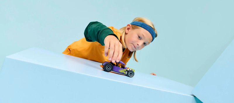 A kis versenyautó-rajongók 5 éves kortól beköthetik magukat, és elindulhatnak a LEGO® City Hot rod (60485) játékkal a nagy sebességű versenyekre. Az autó építőjáték izgalmas versenyzési elemekkel rendelkezik, mint például a nagyméretű hátsó gumik, a sofőr fülkéje felnyitható tetővel és a menő lila kivitel neon zöld lángokkal. Csak adj hozzá egy sofőr minifigurát, és máris játszhatsz villámgyors jeleneteket.