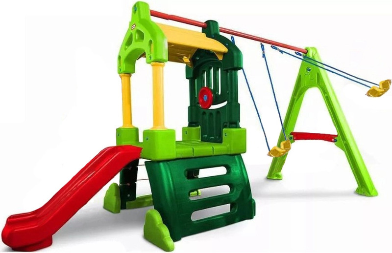Little Tikes Játszóközpont Clubhouse 171093, gyártó: Little Tikes. Pompás multifunkciós játszótér tetővel, amely két hintával van felszerelve. A csúszda alatti térben a gyerekek bújócskát és mászókát találnak. A játszótér nagyon jó minőségű, tartós műanyagból készült, és tartalmazza mindkét ábrázolt hintát, csúszdát és az összes szükséges szerkezeti elemet.