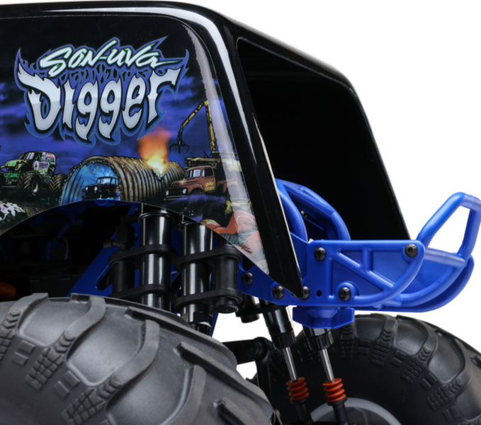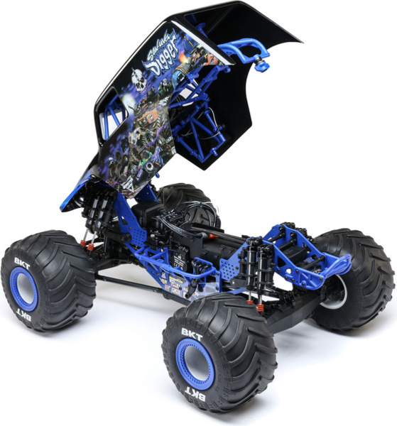 A LMT 2.0 platform még nagyobb teljesítményt, tartósságot és a Monster Jam™ realisztikus megjelenését biztosítja. A távirányítós modell új nyolc olajrugós lengéscsillapítóval rendelkezik, akárcsak a valódi monster truckok. Az autentikus megjelenés érdekében a rugók a lengéscsillapítók belsejében találhatók, és makett üzemanyagtartályokat tartalmaznak. A figurák színes eloxált alumínium lemezekből készülnek, a karosszéria típusának megfelelően (zöld Grave Digger és kék Son-uva Digger). Az új alsó 4-pontos felfüggesztéssel és nagyobb 6x15x5mm csapágyakkal rendelkező, átdolgozott két részes közvetlen tengelyházak növelik a szilárdságot és a tartósságot. Az autó rendelkezik első, középső és hátsó differenciálművel, teleszkópos bordázott tengelyekkel és kardáncsuklókkal. A sebességváltóban nem használnak súrlódó kuplungot, hanem karbantartásmentes Cush Drive rendszert, amely az elastomerikus szigetelőelemek segítségével tompítja a motor ütéseit.